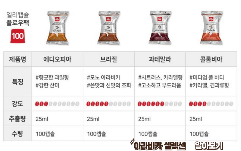 ●아라비카 셀렉션: 브라질, 과테말라, 에티오피아, 콜롬비아, 인디아 등
