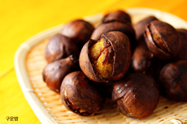 ① 구운 밤 : 껍질에 칼집을 내고 프라이팬이나 에어프라이어에 굽기